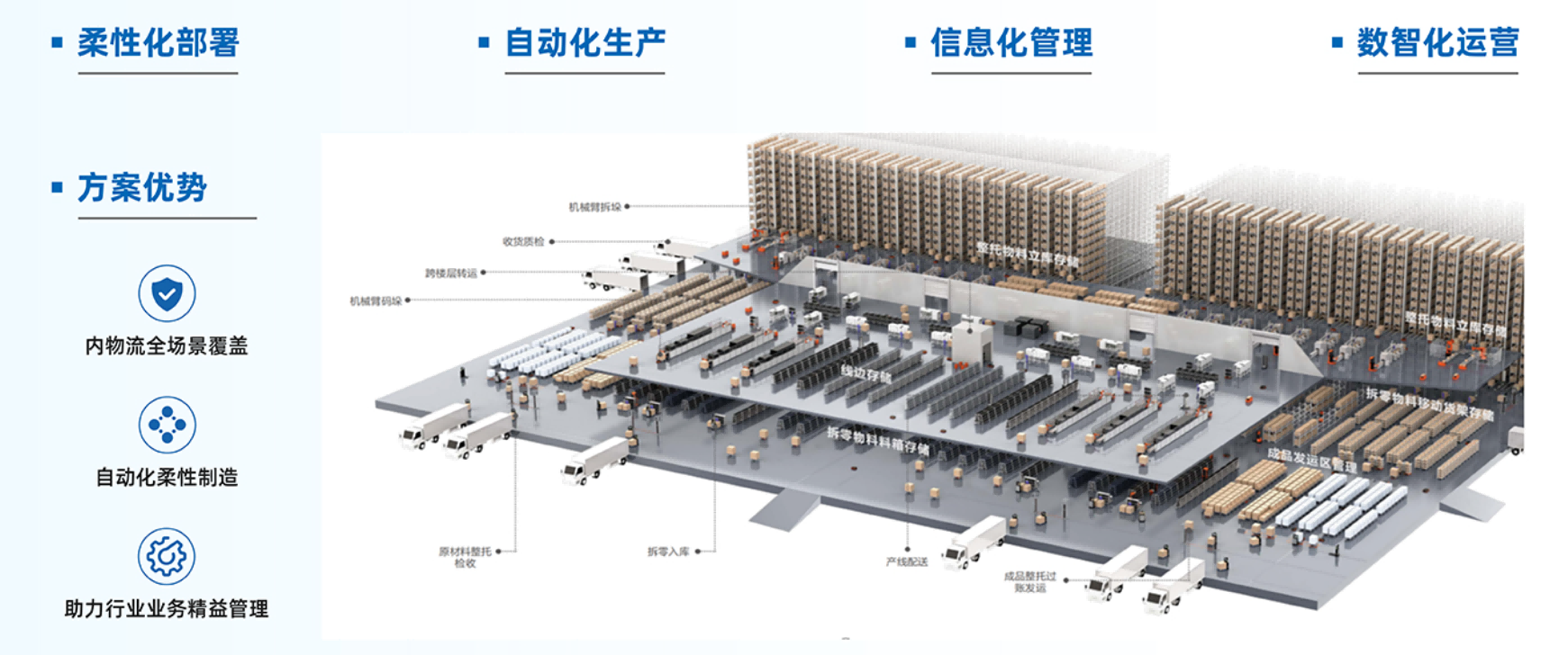 格方智能产仓一体化解决方案结合现场不同工艺制造需求机行业仓储配送业务实现,匹配对应移动机器人,搭配WMS仓储管理系统、RCS机器人调度系统及智能设备集中控制系统,对接提升机、自动门、输送线、货梯等集成设备,实现全厂物料搬运无人化、各类物料管理批次化、物料配送产线自动化、库存管理信息化,提高仓储数智化管理水平。